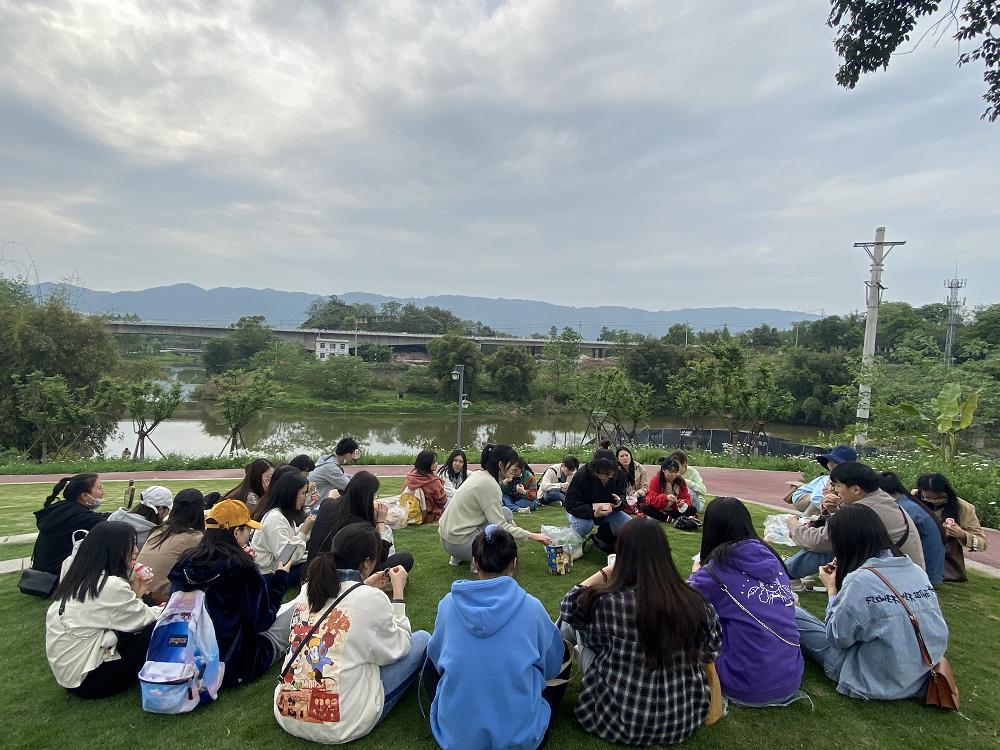 在前往大磨滩湿地公园途中,支部书记李运婷同志为同学们带来了一堂直观生动、别具一格的植物识别课。她选取常见并具代表性的植物为大家讲解种名及其详细特征。“这个是柑橘,其实柑橘是橘、柑、橙、金柑,柚、枳等的总称,是我们西南大学柑橘研究所的研究对象,其花芳香,花、叶、果皮均是提取香精的优质原料……这个是广布野豌豆,豆科野豌豆属的植物,偶数羽状复叶,叶轴顶端为变态的叶卷须,总状花序粉紫色,荚果长圆形……这个是窃衣……”。