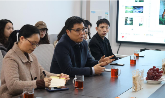 天华园艺负责人郑奕对学院师生的到来表示热烈欢迎。她详细介绍了企业的事业发展情况,展示了企业在园艺领域开拓进取所取得的成绩。同时,她也提出了一系列在苗木养护及生产中遇到的问题,希望在后续的合作中与学院师生共同探讨解决。