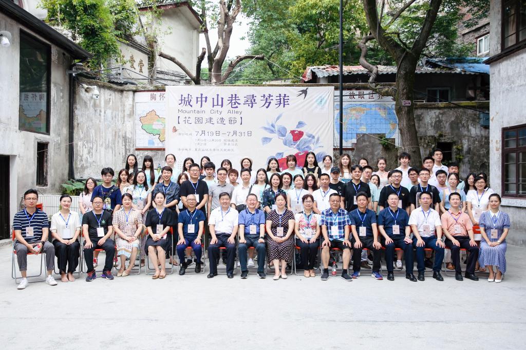 经过7月19、20日的现场建造,第三届西南大学花园建造节于21日,在重庆市渝中区山城巷传统风貌区正式开幕。本次建造活动的主题为“城中山巷寻芳菲”,该主题既描述了山城巷空间的复杂关系,又代表了本次展览的主题内容精彩纷呈,对应着观者可沉浸于山城巷移步换景的空间之中,探寻景观美学的意趣。