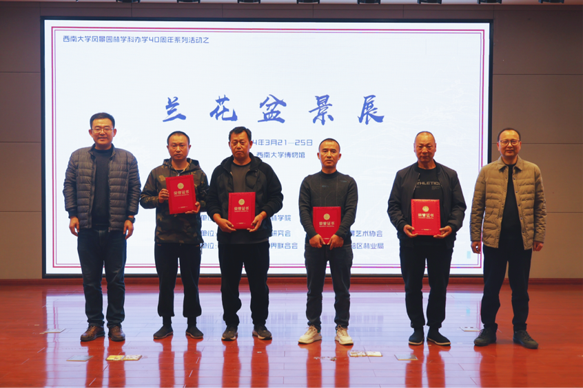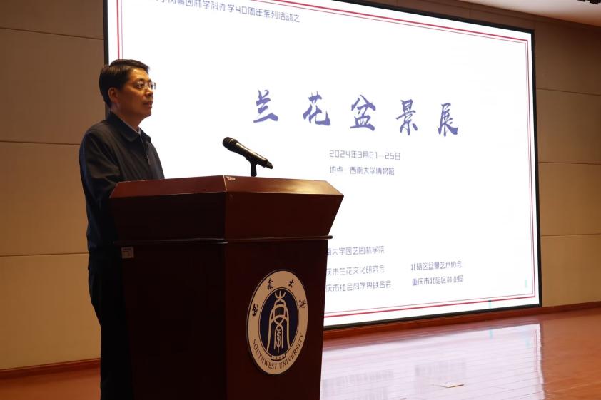 为庆祝风景园林学科办学40周年,弘扬和继承传统园林艺术精髓,3月21日,永利yl23411在西南大学博物馆举办风景园林学科办学40周年系列活动——兰花盆景展。重庆市社会科学界联合会副主席潘勇,重庆市社科联二级巡视员赖开民,北碚区自然保护地管理中心主任王文友,重庆市北碚区林业局党组成员、副局长肖云,重庆市社会科学界联合会周焉旨,重庆市北碚区林业局科技推广站站长赖甫娟,重庆市北碚区林业局高级工程师李洪飞,永利yl23411党委书记潘玉锋、副院长周建华等领导和嘉宾出席展会开幕式,重庆市兰花文化研究会、北碚区盆景艺术协会会员代表以及学院师生代表共100余人参加了开幕式。
