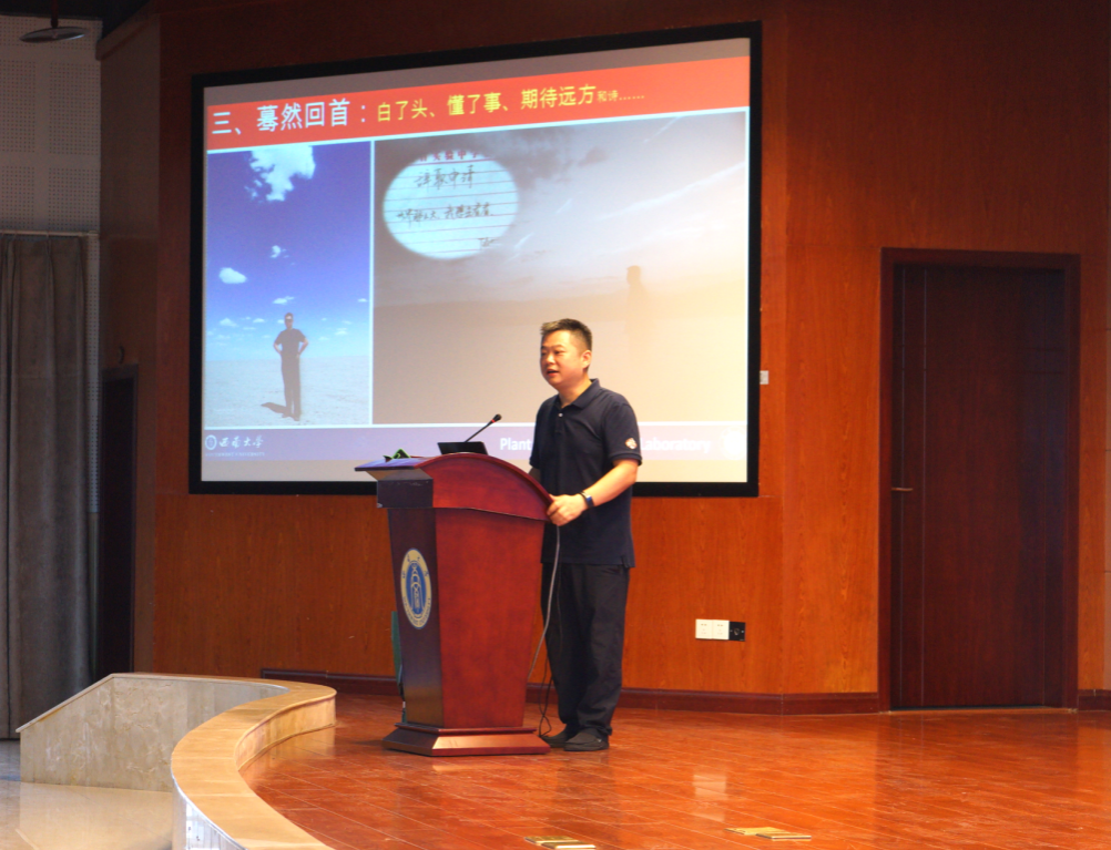 胡春梅学姐鼓励同学们树立宏远的目标,寻找自己的热爱,无惧未知冲破黑暗,塑造光明的未来。关注自己的专业学习、价值塑造和能力培养。头顶云天,脚踩大地,胸怀壮志,放眼未来。