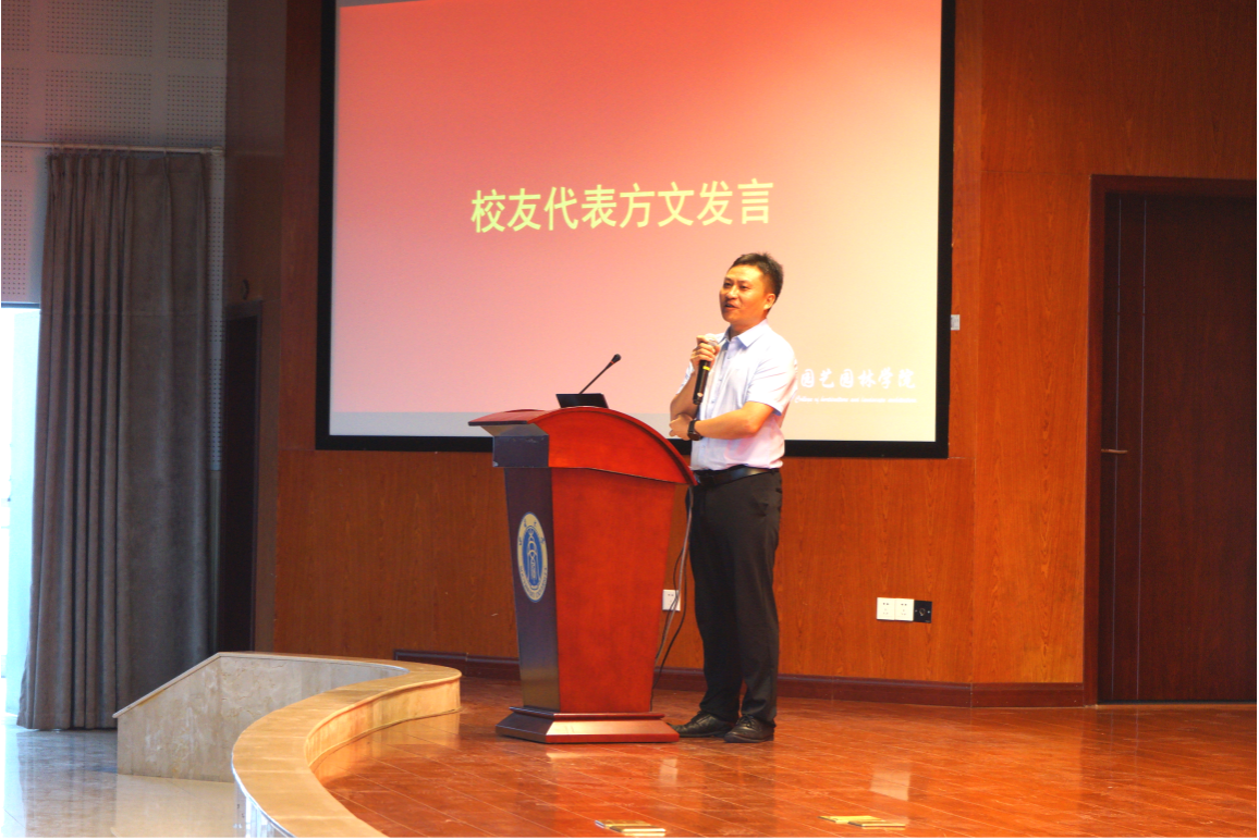 随后,优秀校友代表受邀发言。张勇学长就个人成长、人生感想、未来寄语三个方面分享心得,勉励同学们一步一个脚印,脚踏实地、勤奋刻苦,从专业的角度大胆感知未来,树胜者思维、立智者人生。
