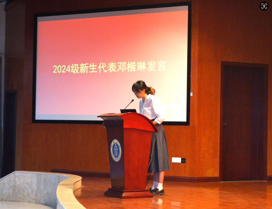 新生代表邓楷琳在发言中首先向辛勤耕耘在教育一线的老师们致以了最崇高的敬意,随后阐述了她对院训“法自然,公天下”的感悟,她认为永利yl23411的学子们应当将所学专业知识与乡村振兴实践紧密结合,用园艺的精细提升乡村风貌,以风景园林的智慧规划绿色空间,借植物的力量促进生态修复与产业振兴,并表示无论同学们的目标剑指何方,都需要从现在开始,尽早规划,扎实打好学科基础知识。