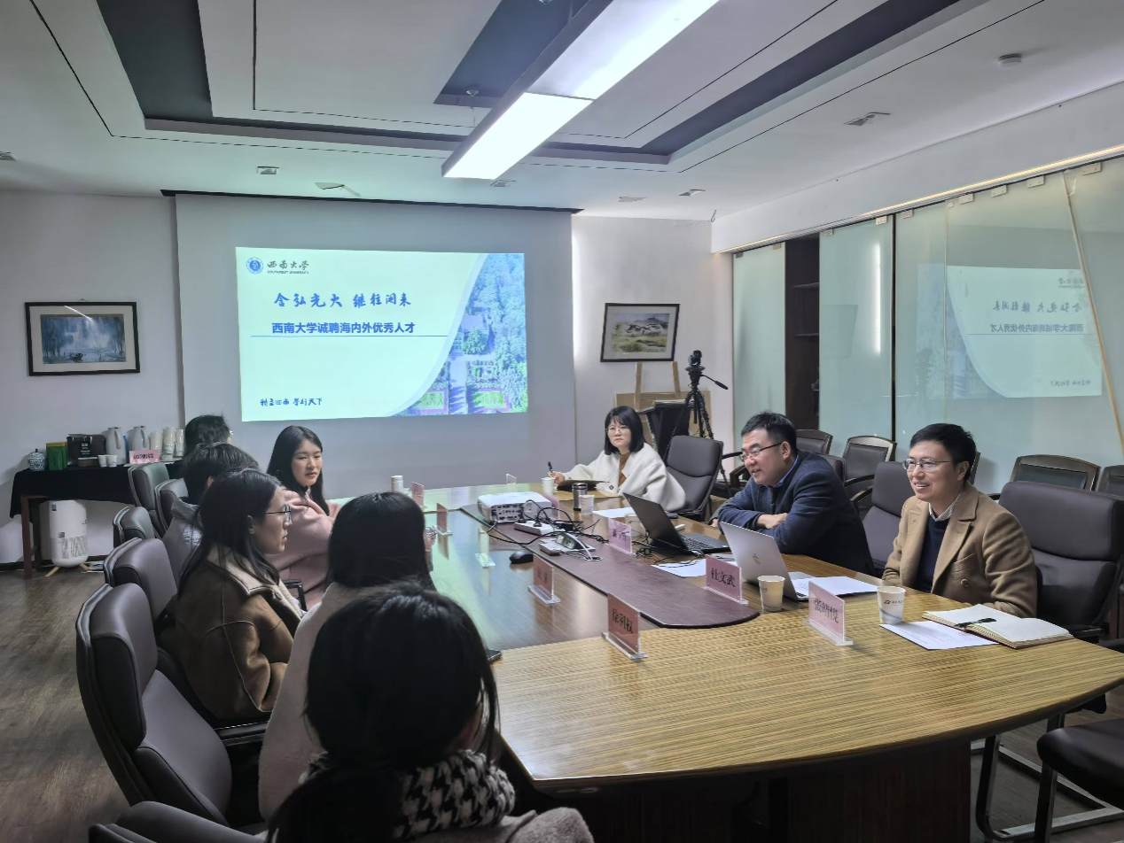 11月26日上午,学院一行来到武汉大学城市设计学院。武汉大学城市设计学院党委书记张文军、党委副书记余亮、城市规划系教师罗巧灵、宋菊芳、周燕、郭诗怡,设计系教师谢梦云、组织员孟伟以及学院博士研究生们参加交流座谈。张文军对学院一行来访表示欢迎,他详细介绍了城市设计学院的总体发展情况、特色研究方向以及教师发展与学生培养的创新做法。潘玉锋介绍了此次调研目的,认为城市设计学院条件优越、底蕴深厚,人才培养成果丰硕,有很多成功经验值得学习借鉴,希望未来双方在人才培养、教师发展、学生就业等方面加强交流合作。随后,双方围绕教师职称评审、发展机制、学生培养等方面进行了深入探讨。座谈会上,潘玉锋还向在场的博士研究生介绍了西南大学人才引进政策,学院与会老师一一回答了同学们关心的就业入职问题。座谈会前,学院一行还参观了城市设计学院教学环境,看望慰问了从学院毕业、现在武汉大学就读研究生的同学们。