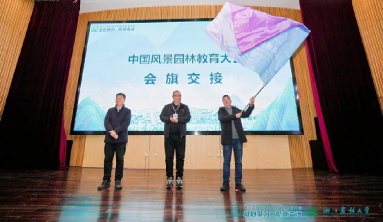 大会闭幕式上,中国风景园林学会教育工作委员会秘书长姚朋宣布:第十四届中国风景园林教育大会将由西南大学承办。周建华副院长顺利接过会旗,并向中国风景园林学会、教育工作委员会、兄弟院校及行业同仁长期以来对西南大学风景园林学科发展的关心、帮助和支持表达了衷心感谢。他表示,我们将用心、用情、用功办好2025年风景园林教育大会,诚邀各位同行莅临重庆,相聚西南大学,共商风景园林教育发展之路。