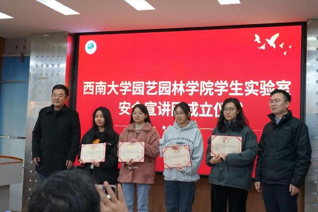 12月19日,宣讲团成立仪式在学院隆重举行。活动开始,潘玉锋庄重宣布学院学生实验室安全宣讲团成立,宣读学生实验室安全宣讲团成员名单,指出学院一直高度重视实验室安全工作,希望宣讲团通力合作,积极为同学们分享实验室知识与经验,帮助更多同学提高安全意识,共同为学院师生的科研安全贡献力量。