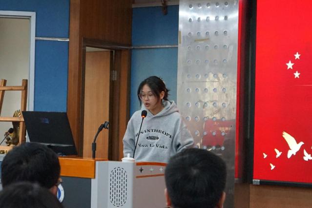 学生代表唐小茴在发言中明确了宣讲团的具体工作包括安全培训、协助安全检查、安全知识宣讲等方面的具体工作,表示宣讲团将不断创新,从学生角度出发提出安全建议,助理大家深入理解并践行实验室安全规定,以增强宣讲团的影响力和实效性。她呼吁全体同学积极参与实验室安全工作,共同创造安全、和谐、高效的学习环境,展现了宣讲团积极投身宣传工作的坚定决心。