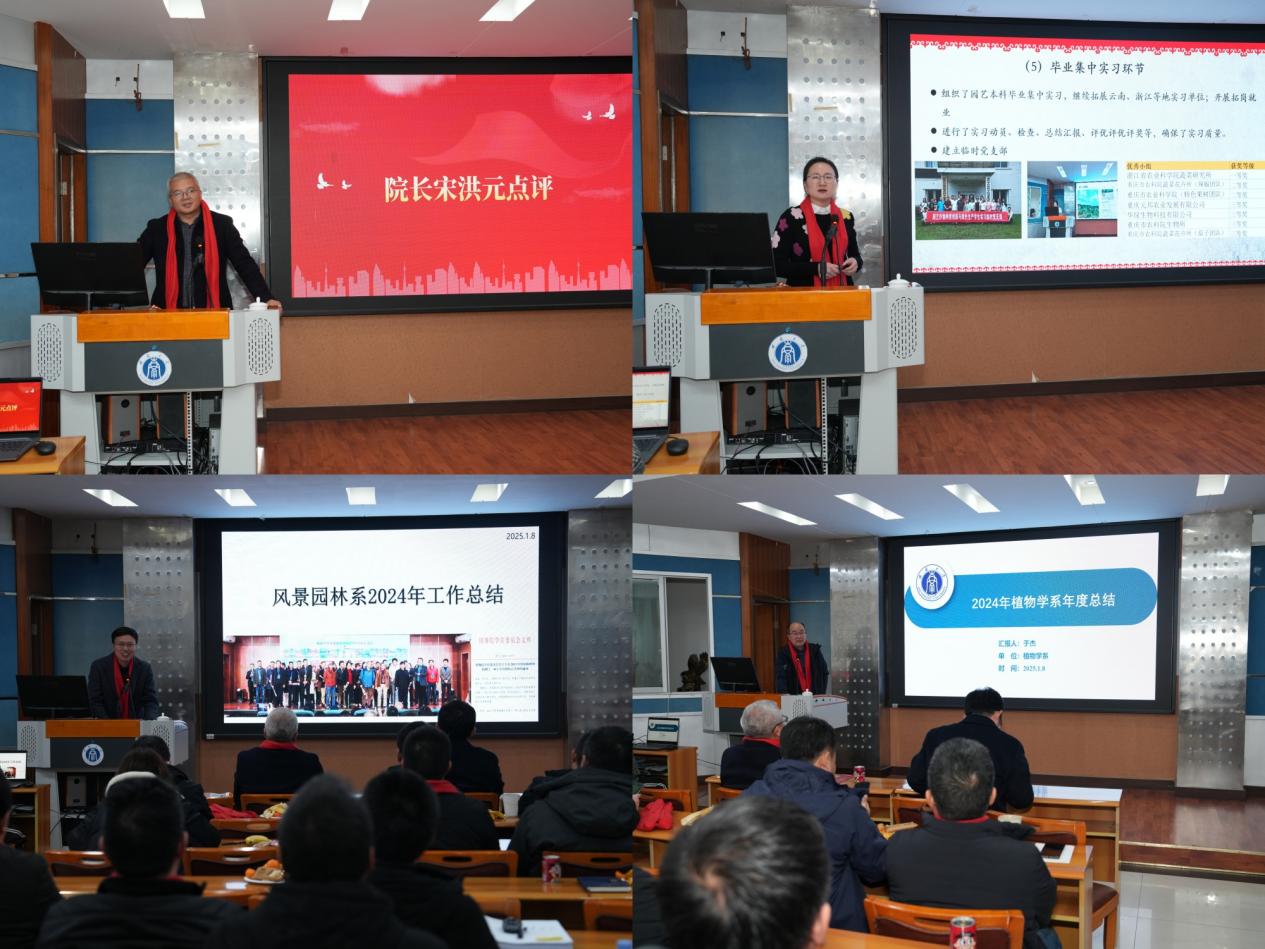 会上,学院领导班子和班子成员分别做述职述廉报告,并进行了领导班子和班子成员民主测评。随后,园艺系、风景园林系、植物系以及工会、教代会依次汇报2024年工作开展情况。园艺系从亮点工作、专业建设、平台建设、学术交流、取得成绩、科普方面、2025年工作计划等方面进行了汇报;风景园林系从学科与专业建设、本科教学、研究生教育与平台建设、科研成果、学术报告、对外交流、人才队伍建设、社会服务、来年展望等方面进行了汇报;植物系从教学工作、科学研究、育人工作、社会服务、未来规划等方面进行了汇报;工会和教代会也分别汇报了他们在落实学校工作要求、组织开展工会活动、维护教职工权益、促进学院民主管理等方面所做的工作。汇报内容丰富,数据详实,充分展示了过去一年里学院在学科建设、教学服务、科学研究和社会合作等方面取得的丰硕成果。