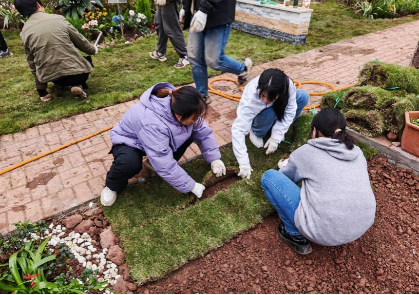 通过劳动实践,同学们不仅掌握了园林植物造景的基本要点,熟悉了栽培技术和施工流程,更学会了如何在实践中发现问题、解决问题。面对实践中的种种挑战,他们开动脑筋,运用所学创新思考,他们勇于动手,不怕脏不怕苦不怕累,团队精诚合作,完成了从创意到方案到落地的全过程工作。此项活动不仅深化了同学们对专业的理解,还锻炼了身心,培养了面对困难不屈不挠的品质。尽管身体经历了短暂的酸痛,但他们的内心却因这份独特的经历和满满的收获而感到无比的充实和喜悦。