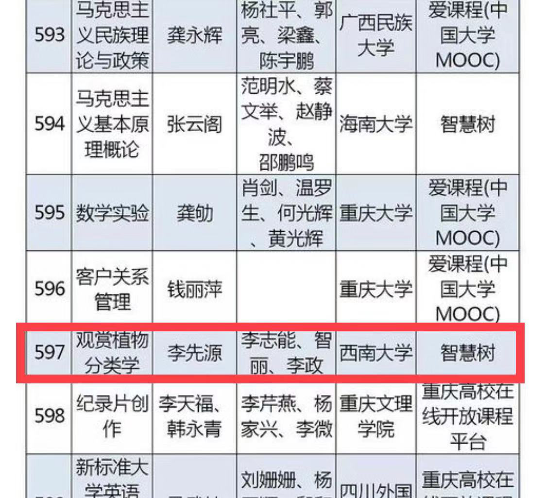 近日,按照《教育部关于加强高等学校在线开放课程建设应用与管理的意见》(教高〔2015〕3号)、《教育部办公厅关于开展2018年国家精品在线开放课程认定工作的通知》(教高厅函〔2018〕44号)精神与要求,经省级教育行政部门、有关部门(单位)教育司(局)、部属高等学校申报推荐,并经专家评议,认定北京大学“慕课问道”等801门课程为2018年国家精品在线开放课程。我校永利yl23411《观赏植物分类学》课程位列其中,是西南大学唯一上榜的课程,也是重庆市上榜的四门课程之一。