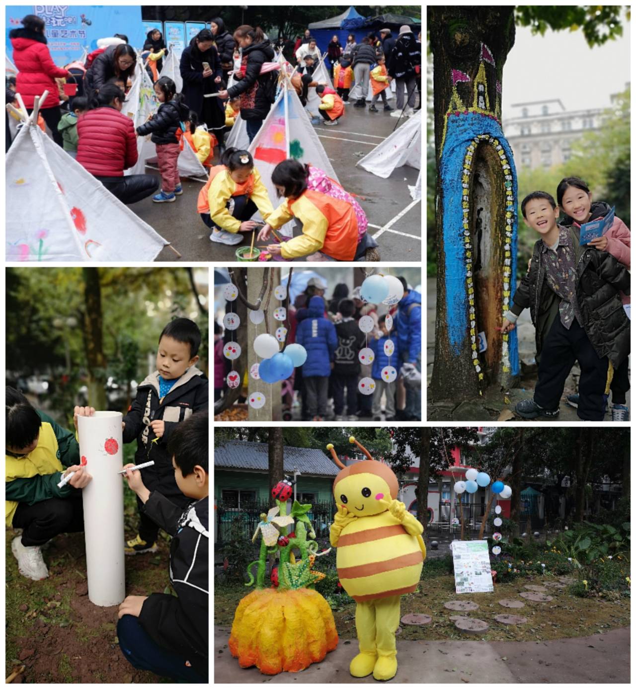 社区是人与人最紧密相连的地方,面向社区艺术的儿童成长探索,是创新儿童成长的社区实践。学校南社区作为北碚区的老旧社区,也是学校实验幼儿园(南区)所在地,居住及活动人群以儿童和老年人为主。本次“PLAY一起玩吧!——社区儿童艺术节”是在倡导儿童友好城市建设背景下的积极举措,以“CFC家园计划”为核心,以保障儿童四大基本权利为出发点,依托城市空间、尤其是儿童赖以生存的社区环境,为儿童成长提供更优的保障和服务,让更多的人关注儿童成长。儿童是艺术节的参与者与艺术的创造者,社区儿童艺术节能充分激发儿童对社区环境的兴趣,鼓励和引导儿童用艺术的形式来表达自己的想法与情感。