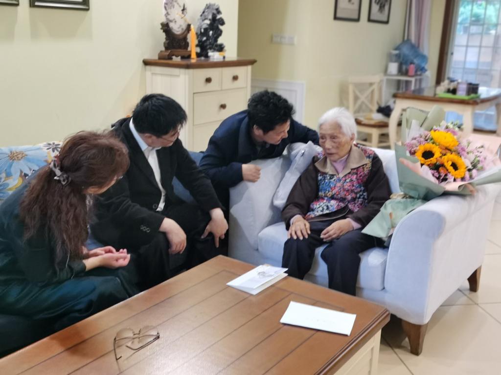 走进刘佩瑛家里,百岁高龄的刘老虽然年事已高,但依然精神矍铄。李书记亲切地握住刘老的手,感谢她多年来对学校发展所做出的贡献以及各项工作给予的关心, 并提前向她致以节日的问候和美好的祝福。