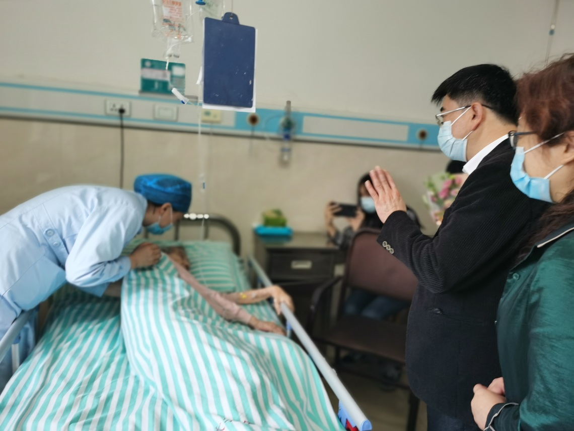 来到校医院,李书记关心询问吴明珠院士的饮食起居、身体状况和家庭生活情况,并向其家属表达亲切问候。李书记仔细询问了医护人员吴明珠院士的治疗情况,并叮嘱随行人员要为老人安排好康复和疗养,及时帮助解决他们生活中的困难。