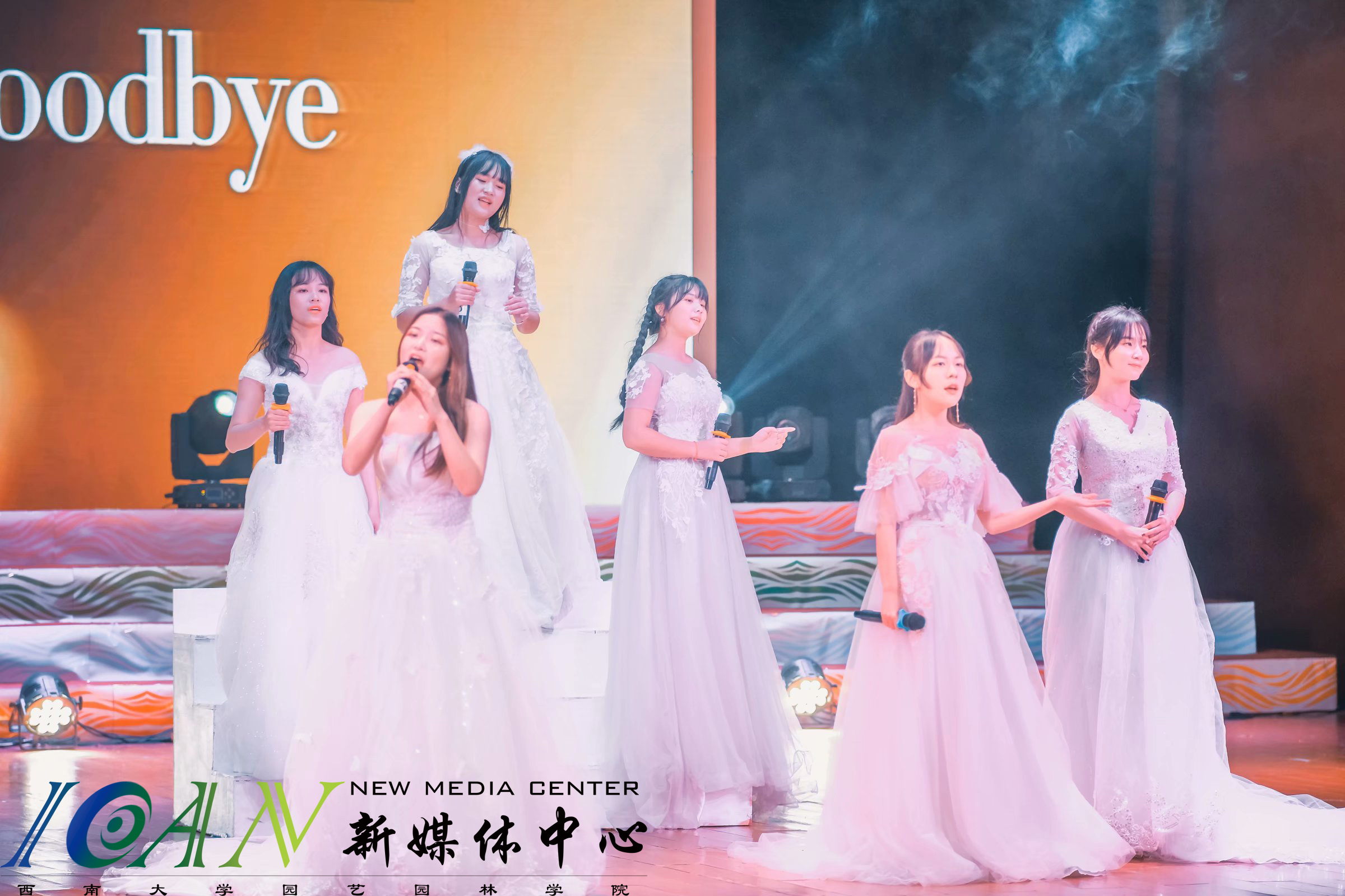 以绿之名,以青春之名,以希望之名。伴随着倒计时的结束,晚会在开场节目女声同唱《我期待》中拉开帷幕。身着礼服的7位女生,唱出自己的青春心声;一声声say goodbye,表达的正是我们作别过去的自己,一声声let me fly,表达的正是我们开始新的大学生活,走向人生新的篇章。