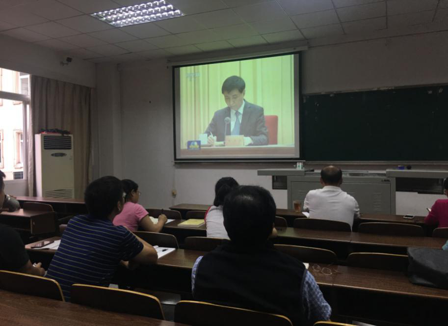 会上,与会人员集体收看了习近平总书记出席“不忘初心、牢记使命”主题教育工作会议并发表重要讲话的新闻视频;收看学习了南京大学党委副书记朱庆葆同志所做的《世界一流大学视野下的“双一流”建设》专题报告视频。