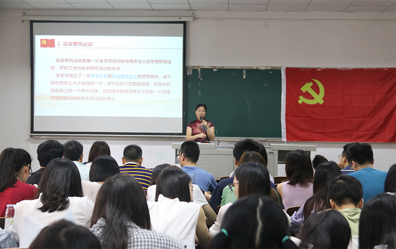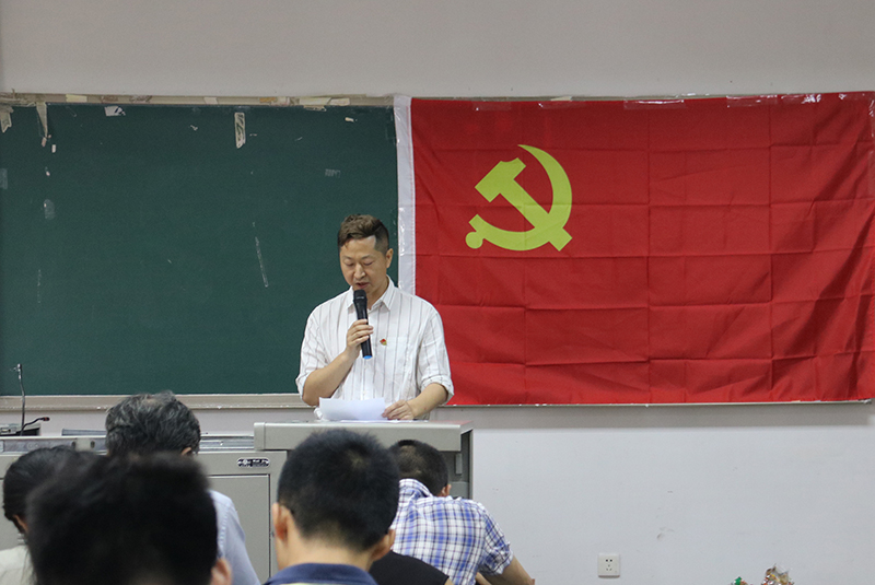 党委委员罗爱军老师寄语毕业生党员,不忘初心、牢记使命,乘理想之马,勇往直前,不负韶华。郑莉佳副书记随后进行了题为“不忘初心、牢记使命,做新时代合格建设者”专题党课讲授,详细列举了党史上13次集中教育,重点讲解了2015年“三严三实”专题教育和2016年以来的“两学一做”学习教育,号召毕业生党员们努力学习,扎实工作,牢记历史使命,勇担时代责任,为师弟师妹们立标杆、作表率,在工作岗位上争先进、创优秀。组织员张靖悦则从组织关系转接办法、档案材料审核归档和交接传递和工作时间安排三方面讲解了毕业生党员组织关系转接事宜并进行了相关问题的解答。