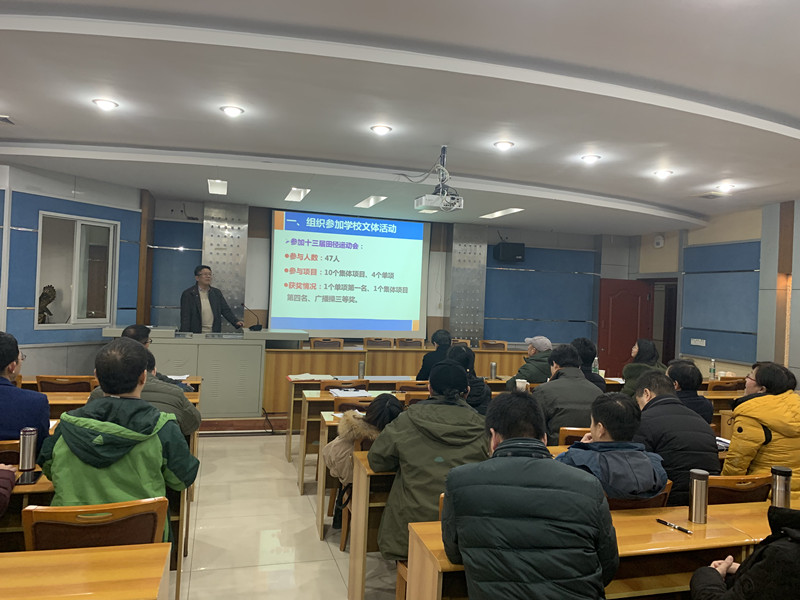 2019年1月15日下午3点,学院在406会议室组织召开了全院教职工大会,会议内容包括:学院领导班子和个人述职、学院工会“会员评家”、学院基层单位2018年工作汇报以及学院先进集体和个人表彰。