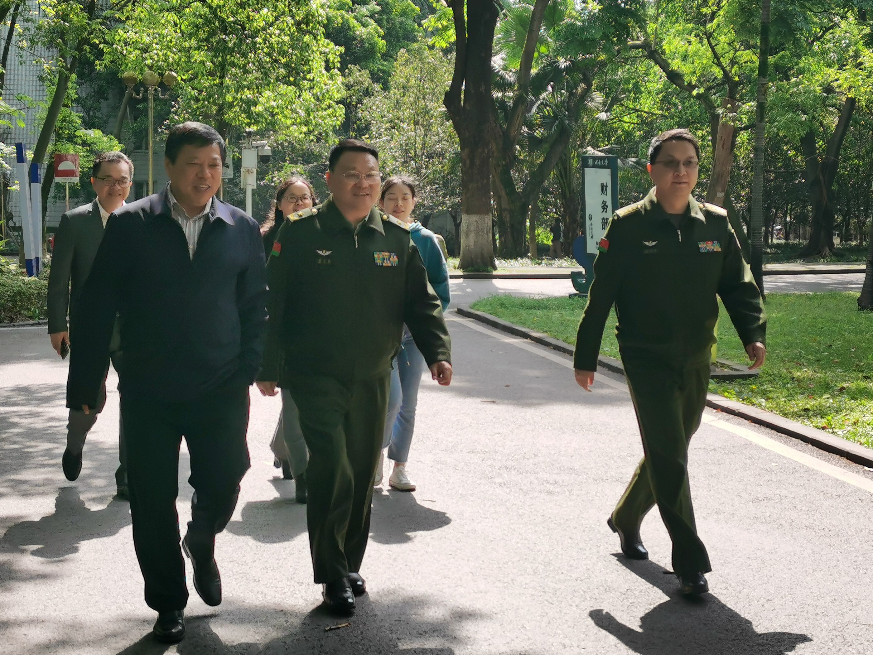 4月13日上午,中国人民解放军陆军勤务学院院长周炎明少将一行4人莅临学院考察交流,看望慰问结对帮扶家庭经济困难学生,为他们送去关怀与温暖,学院党委书记李雪梅、副书记李小红陪同考察。