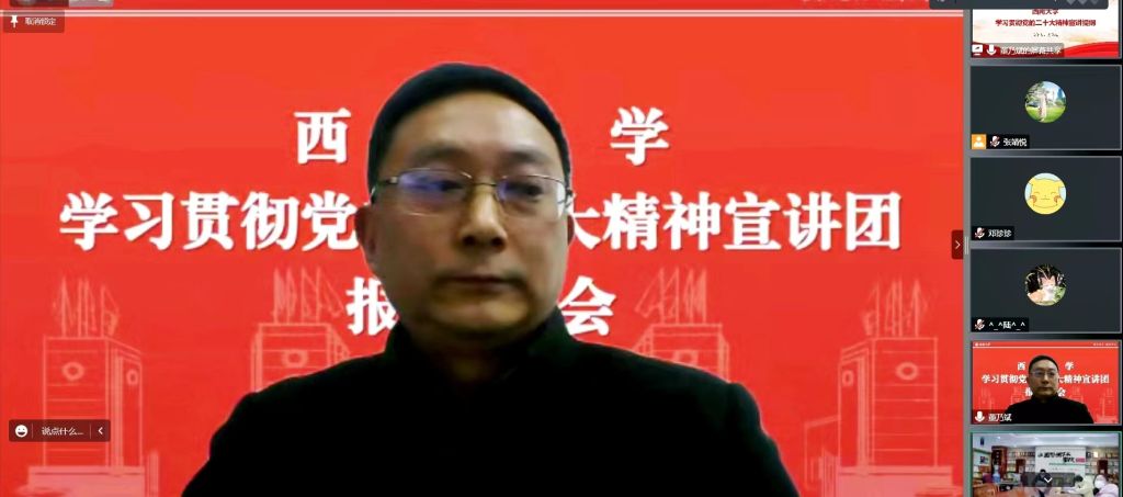 12月28日,学院通过腾讯线上会议召开2022年第八次党委理论学习中心组学习会,深入学习领会党的二十大精神。学院党委理论中心组成员参会,党委书记潘玉锋主持会议。
