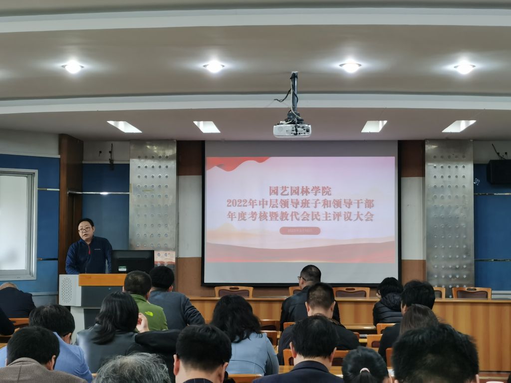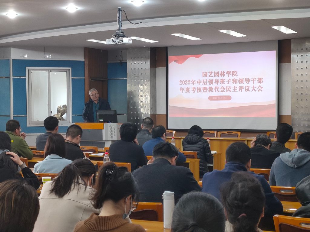 3月10日,学院在33教406会议室召开2022年中层领导班子和领导干部年度考核暨教代会民主评议大会。学校组织部副处级组织员刘肃、校工会生活福利科科长吴睿明,学院所有院领导和全体教职工参加大会。学院领导班子及成员以报告形式进行述职述廉,与会人员进行民主测评和民主评议。会议由学院党委书记潘玉锋主持。