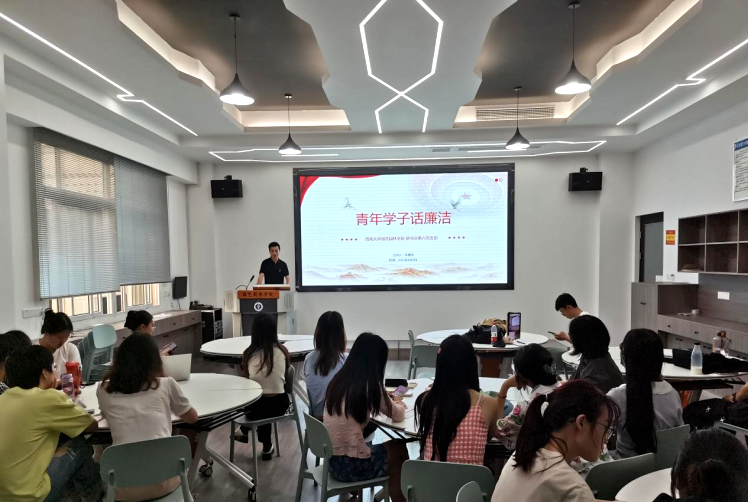 为深入学习贯彻习近平新时代中国特色社会主义思想,扎实推进党风廉政教育,切实增强广大党员意识。根据学校纪委要求和永利yl23411党委指导,研究生第六党支部于6月9日在33教508开展了支部书记讲廉洁党课活动。支部党员、发展对象、入党积极分子共计30余人参加。会议由支部纪律委员程建国同志主持。