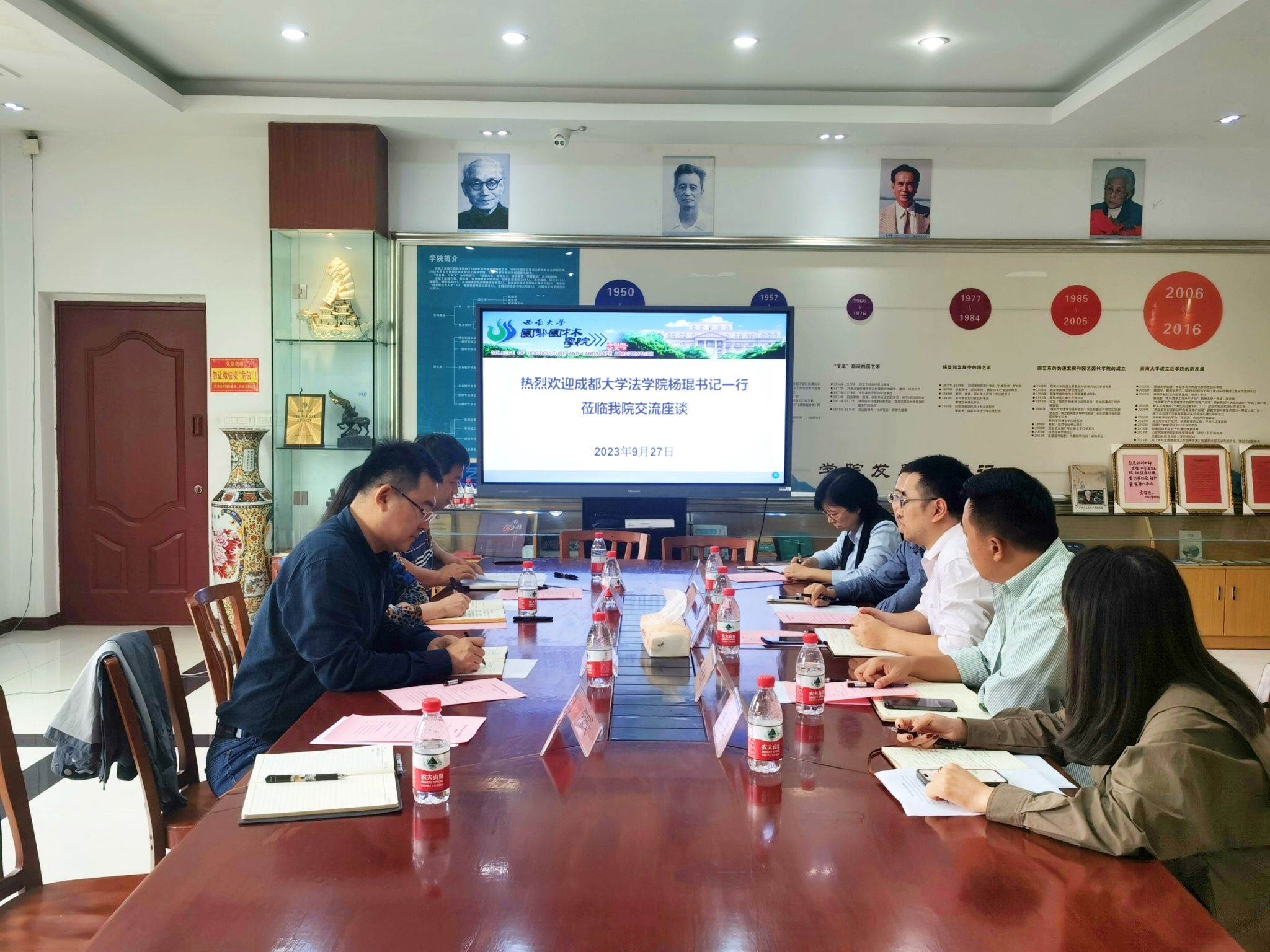 9月27日上午,成都大学法学院党委书记杨琨一行5人来学院考察交流。学院党委书记潘玉锋,党委副书记李小红,组织员张靖悦,团委书记、学工办主任谭泽轩参加了交流会,会议由潘玉锋主持。