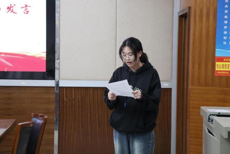 观赏植物培育与应用研究生党支部副书记唐小茴作支委代表发言。她分享了支部工作经验和参加学院党委组织活动的感受,表示在今后的支部工作中要进一步深化理论武装头脑,激发支部党员创新潜能;强化组织凝聚力建设,提升党员责任与担当;优化党支部管理机制,增强团队协作与执行力。