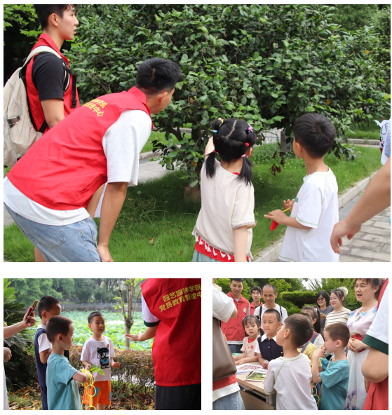 在绿意盎然的共青团花园,小朋友们在研究生志愿者的带领下,开启了趣味植物识别之旅。志愿者们通过生动有趣的讲解和互动,帮助孩子们初步了解植物世界的奥秘,并指导他们亲手采集植物标本。通过有奖竞答的形式,孩子们认识了多种独特植物,如被誉为植物界“活化石”的苏铁、“一串串小鞭炮”般的一串红以及散发着迷人香气的白兰等。