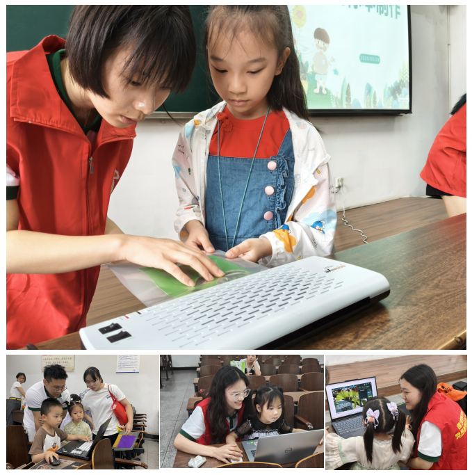 在33教601教室,孩子们在志愿者的指导下,亲手尝试制作属于自己的植物标本。随后,在602教室,孩子们通过虚拟仿真实验系统“穿越”到植物细胞内部,利用双语界面解析植物细胞结构,并在虚拟共青团花园中畅游,进一步加深对植物王国的认识。最后,在SU建模体验环节中,孩子们在SU软件里探索虚拟儿童景观模型,体会数字化景观建模的乐趣。