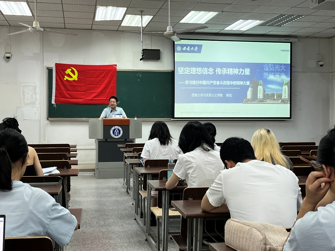 5月29日上午,马克思主义学院副院长唐斌教授为毕业生党员带来了一场生动的党性教育课。他以《坚定理想信念 传承精神力量——学习践行中国共产党奋斗历程中的精神力量》为题,深入浅出地讲解了中国共产党的奋斗历程和精神力量,帮助毕业生党员进一步坚定了理想信念,坚守正确的世界观、人生观和价值观,永葆共产党员的政治本色。