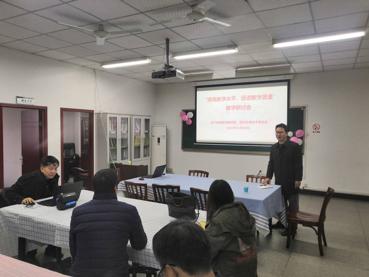 2020年11月26日下午3:00,我院园艺系“园艺植物栽培教研室”和“园艺生物技术教研室”在33-414联合组织开展了主题为“提高教学水平,促进教学质量”的教学研讨,此次活动由教研室主任司军副教授主持,学院党委书记李雪梅书记,园艺系主任潘宇教授和副主任高启国副教授、马婧副教授等多位老师参加。