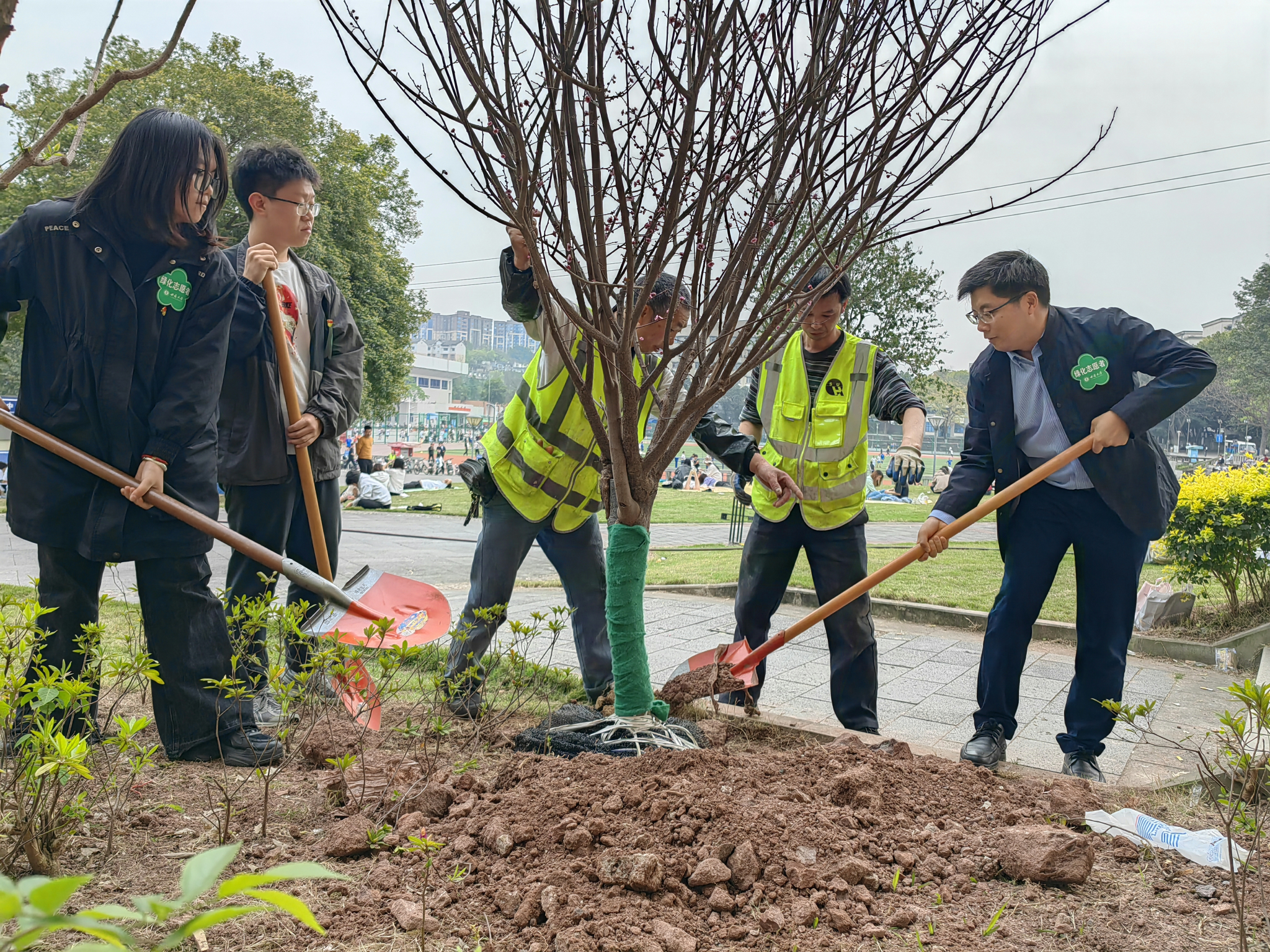 老师同学们和后勤集团工作人员一起,划分为若干行动小组,在校史馆、融汇中路附近栽种美人梅树苗,挖坑、放苗、扶正、填土、夯实、浇水,携手并肩完成树苗栽种。在挖坑过程中遇到铁铲被坚硬石块拦住进路,或挖出了会影响树苗生长的塑料袋等重重阻力,但这些都丝毫不影响同学们的劳动积极性。大家纷纷跳下树坑,徒手刨出土坑中的石块和塑料。他们在活动中展现出的坚韧与毅力,生动地展示了艺林学子向大地播撒绿色希望时的执着与情怀。