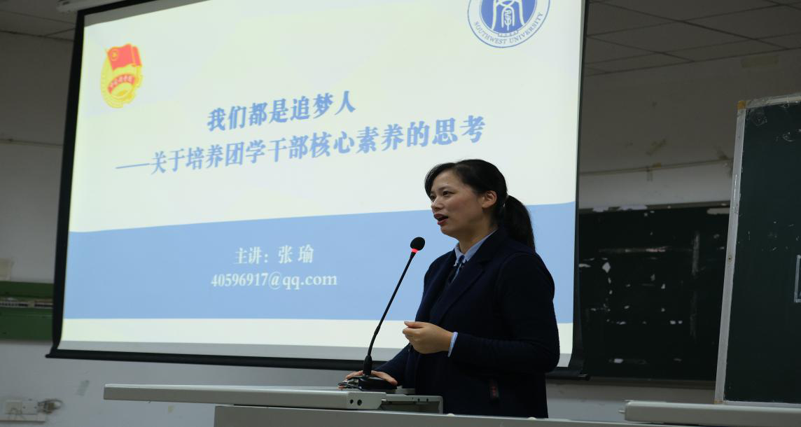 2019年11月17日中午,永利yl23411团校第一课在31教208举行。团校邀请西南大学团委副书记张瑜作题为“我们都是追梦人——团学干部的核心素养”的主题授课,永利yl23411团委书记胡乐、团委学生会全体成员、各班委代表参与聆听。