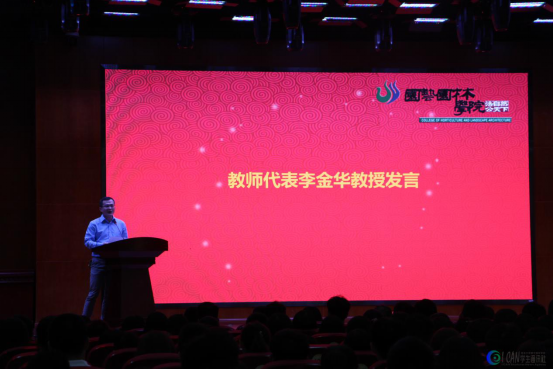 接下来老生代表2016级风景园林专业研究生杨思清发言,以人生的转变、敏勤于求知、青年的使命感劝谨同学们,希望大家园内修德艺,园外成瑶林,秉持艺林学子的优秀作风,在传承中发展,在发展中创新。随后新生代表2018级风景园林8班阙雨董同学畅想了丰富美好的大学生活,将积极探索自身的责任与使命。