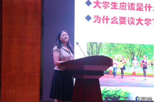 大会第二阶段,由校友代表周才琼教授为新生讲授开学第一课。她认为大学的本质是学习的能力和思维的方式,学生要学会学习的方法,表达的艺术和批判性精神。周教授博闻强识,展示了爱与责任,学习与生活之间的连系,令人受益良多。