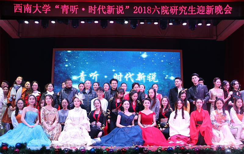 12月11日晚,由西南大学音乐学院、永利yl23411、农学与生物科技学院、资源环境学院、物理科学与技术学院和教育学部主办,六院研究生会联合承办的“青听·时代新说”研究生迎新晚会在光大礼堂准时拉开帷幕。此次晚会邀请了各学院党政领导、老师参加,我院党委书记唐荣发、副书记郑莉佳、副院长宋洪元、研究生辅导员张靖悦亲临晚会现场。精彩纷呈的节目,炫目的舞台效果同时吸引了众多师生前来观赏,整个大礼堂座无虚席。