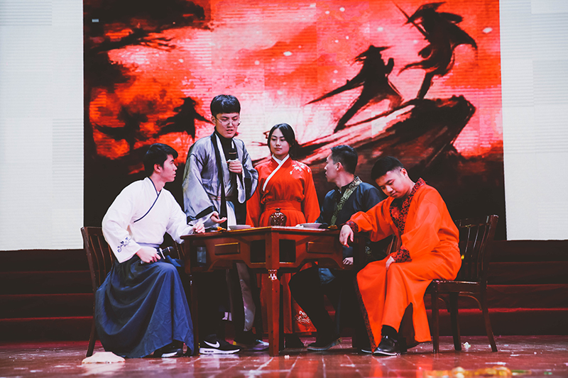晚会开始前,领导祝福视频预热全场,唐书记表达了对学院及学校学子们深切的期望和美好的祝愿。节目以器乐合奏《权御天下》开场,分为“初梦”、“新尘”、“远歌”三个篇章,多角度展示了学生们积极昂扬的风貌。“新尘”篇章中的音乐剧《对不起》和“远歌”篇章中资环院的小品《等你回家》是学生对家人牵挂、对未来追求的象征。小品《江湖恩仇录》、农生院的舞蹈《spark》和六院合唱的《贝加尔湖畔》等节目赢得了现场的阵阵喝彩。“远歌”篇章中器乐合奏《弦乐之声》将中西乐器完美融合,体现了开放包容的文化态度;情景舞台剧《迷迭香》为晚会增加了浓墨重彩的一笔。整场晚会精彩不断、高潮迭起,折射着青春的光芒。