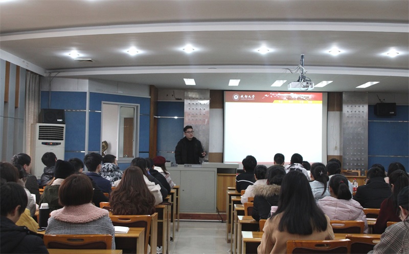 会上,研究生辅导员张靖悦老师讲话,强调了本次交流会的重要性。就职于成都大学的张飞率先进行了分享。他指出求职成功的第一步是对自己合理的定位,接着以自身经历为例从前期的就业信息收集到准备辅导员笔试、面试以及职业发展四个方面为大家进行了具体阐述。张妮娜和汪雷分别就选调生和事业单位的备考及笔试、面试做出了详细讲解并给出了中肯的建议。就职于万科地产的海维珂分享了作为甲方设计师的工作生活,横向对比了包括万科、龙湖、融创、旭辉、东原等几大公司的面试流程,总结了宝贵的经验。在分享会后的提问环节,大家踊跃提问,四位分享人均给予了耐心解答。最后,张靖悦老师结合自身的工作经验,分享了身边的典型案例;另外针对同学们最关心的几个问题,补充并总结了就业的现状和方向,对同学们寄予了美好祝愿,为分享会画上了圆满的句号。