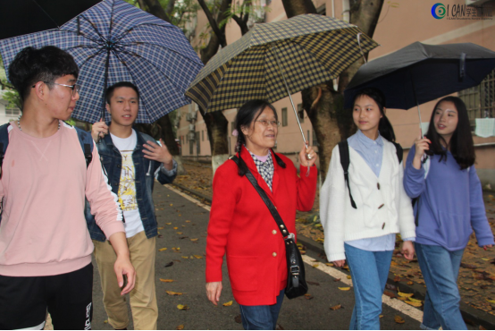 与此同时,第二组志愿者队伍带领杨天秀老师参观了校园。一路上杨老师在和志愿者们谈笑风生的同时也向他们讲授了关于银杏的奥秘,介绍了银杏的传粉和授精过程及其特点和悠久历史,激起了志愿者们对植物的好奇心与探索欲。“多多锻炼身体,才能更好学习知识。”这是杨老师对志愿者们的校园生活和学习状态深深的关切和嘱托。