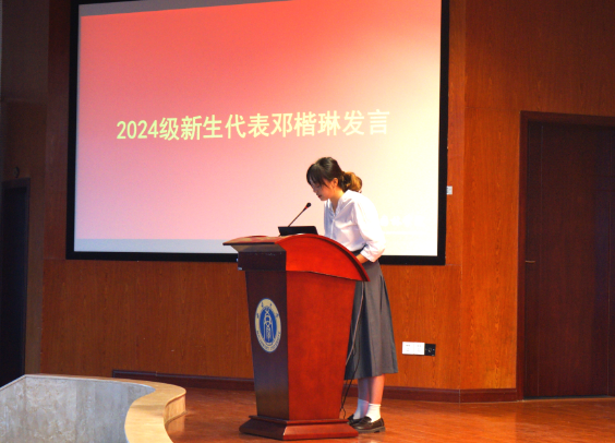 新生代表邓楷琳在发言中首先向辛勤耕耘在教育一线的老师们致以了最崇高的敬意,随后阐述了她对院训“法自然,公天下”的感悟,她认为永利yl23411的学子们应当将所学专业知识与乡村振兴实践紧密结合,用园艺的精细提升乡村风貌,以风景园林的智慧规划绿色空间,借植物的力量促进生态修复与产业振兴,并表示无论同学们的目标剑指何方,都需要从现在开始尽早规划,扎实打好学科基础知识。