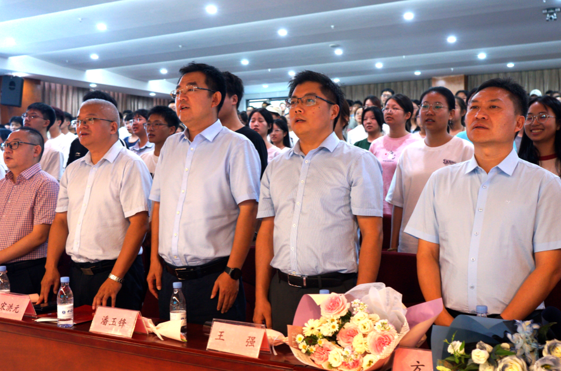 见面会在庄严的国歌声中拉开序幕,全体师生起立、齐唱国歌,共同唱响对祖国的热爱与敬意。这不仅是对新生进行爱国主义教育的重要一课,也是激励他们在未来学习生活中不断奋斗的精神力量。