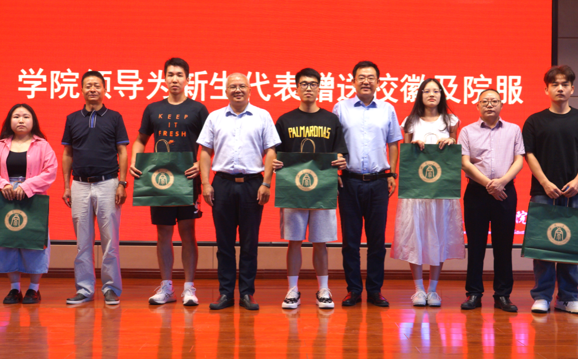 学院领导为新生代表赠送校徽与院服,这不仅是对新生的美好祝愿,也预示着其成为了一名真正的艺林学子。校徽象征着学校的荣誉与责任,院服则代表着学院的温暖与关怀,每一位艺林学子都深知这是一份荣誉,更是一份沉甸甸的责任。