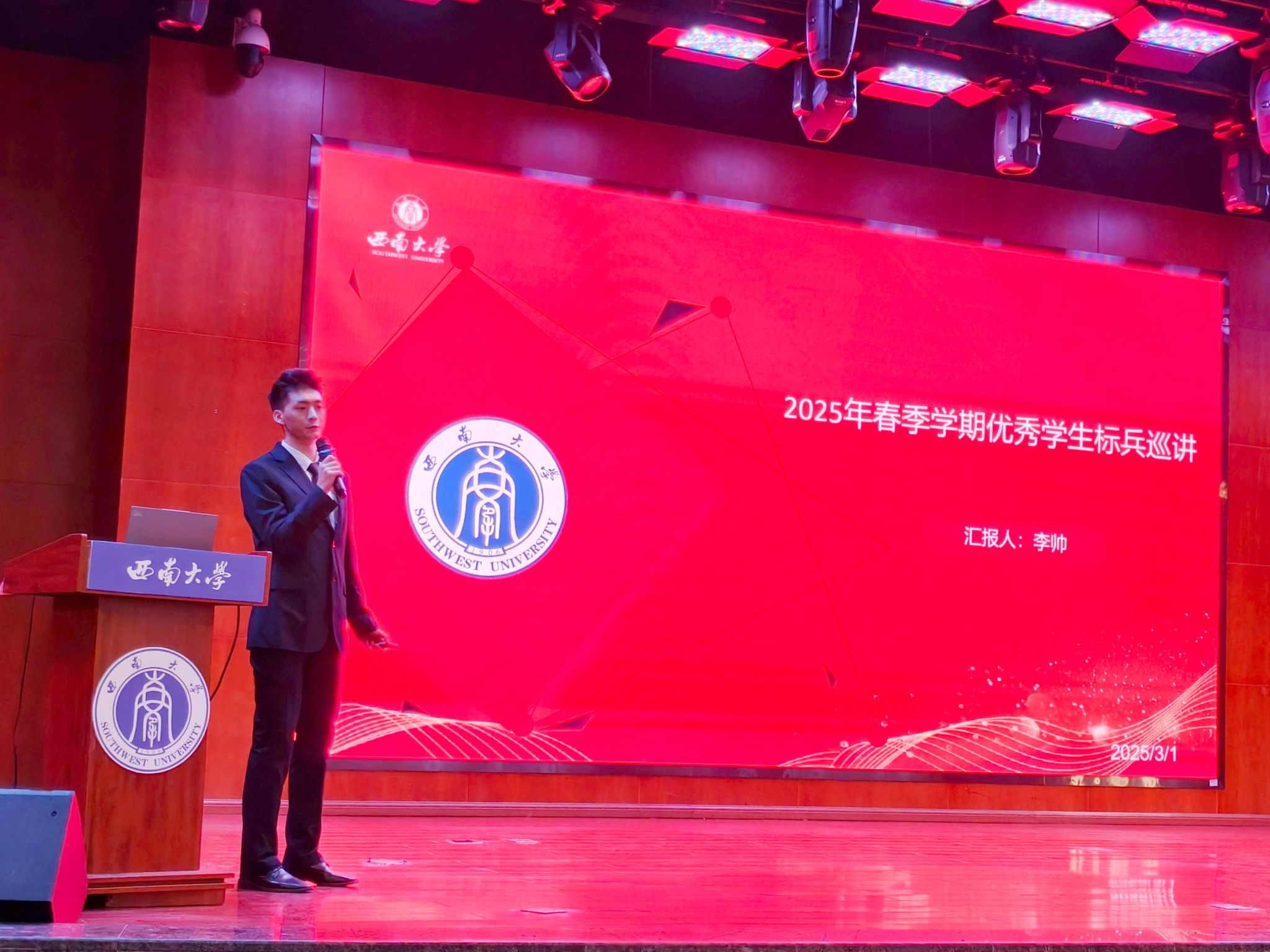 在追求卓越的道路上榜样的力量熠熠生辉,为激发学院学生明确奋斗方向、汲取奋进力量,3月1日,西南大学“榜样的力量”优秀学生标兵先进事迹巡讲报告会永利yl23411专场在南区活动中心107报告厅圆满举行。植物科学与技术(中外合作办学)专业的杨潇然、风景园林专业的陶姝羽、植物保护专业的李帅三位优秀学生标兵先后围绕个人学习成长经历,重点讲述了努力追寻理想、突破现实局限、超越自我的成长过程。学院2024级本科生辅导员许淑雅、2024级全体本科生参与巡讲报告会。