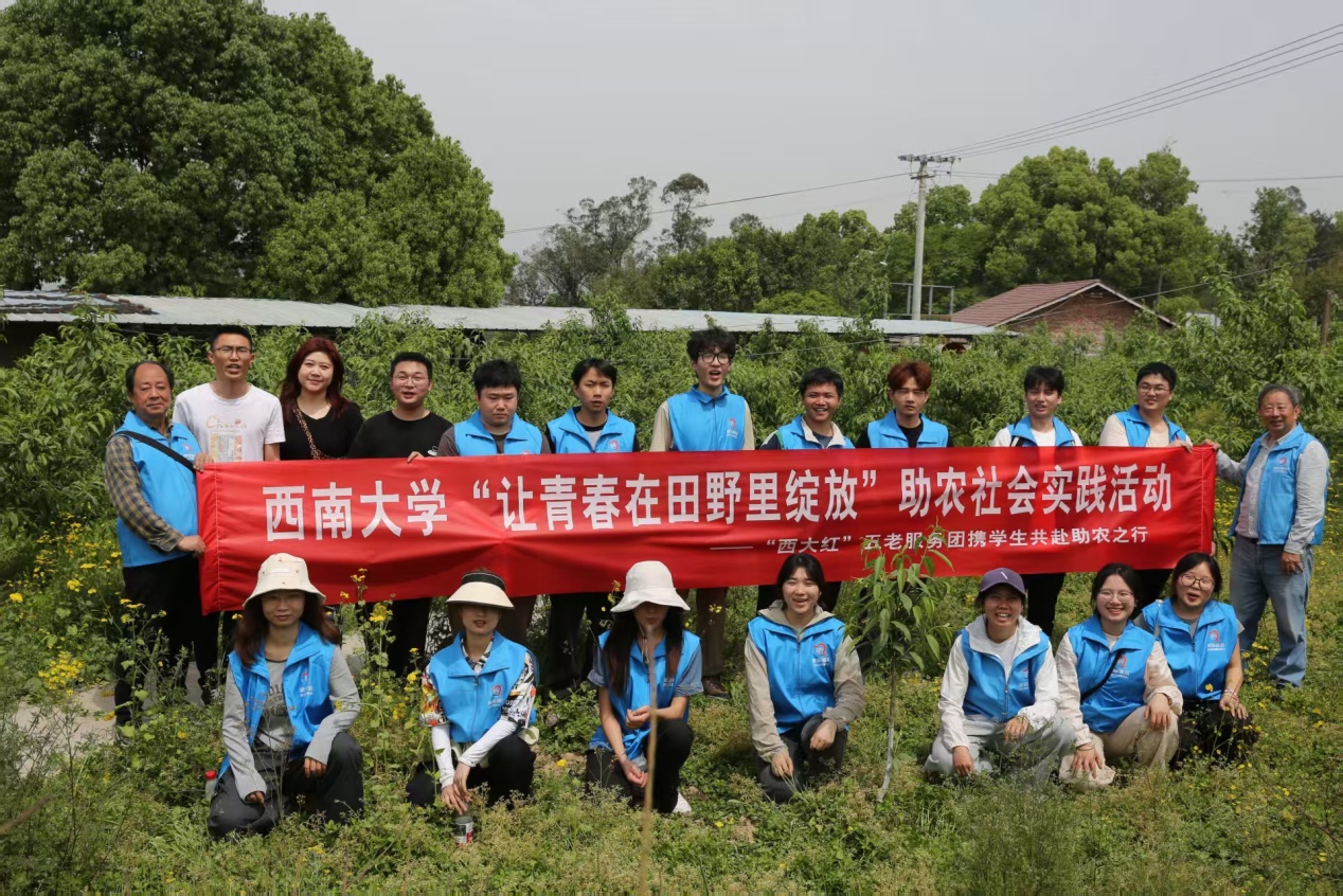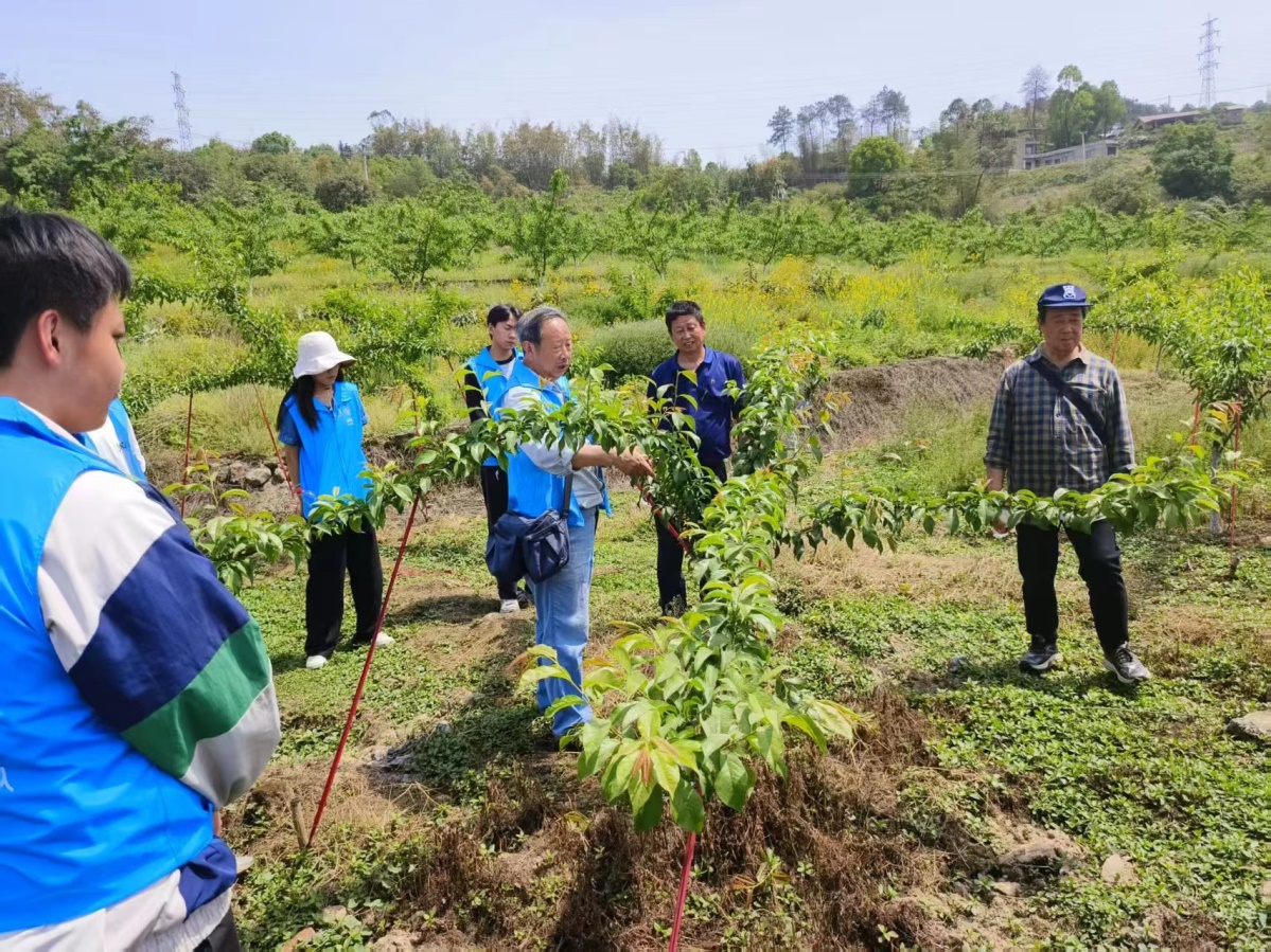 4月16日,学院联合北碚区科学技术协会等单位,在北碚区西山坪村“恒屹果园”开展了“让青春在田野里绽放”助农社会实践活动。西南大学关工委副理事长鲜宗广,学院退休教师李晓林,北碚区科协副主席傅建华,科协工作人员陈旭、李娟,学院2021级本科生辅导员余容,园艺专业的本科生、研究生以及“西小晖”学生服务团志愿者共20余人参加活动。