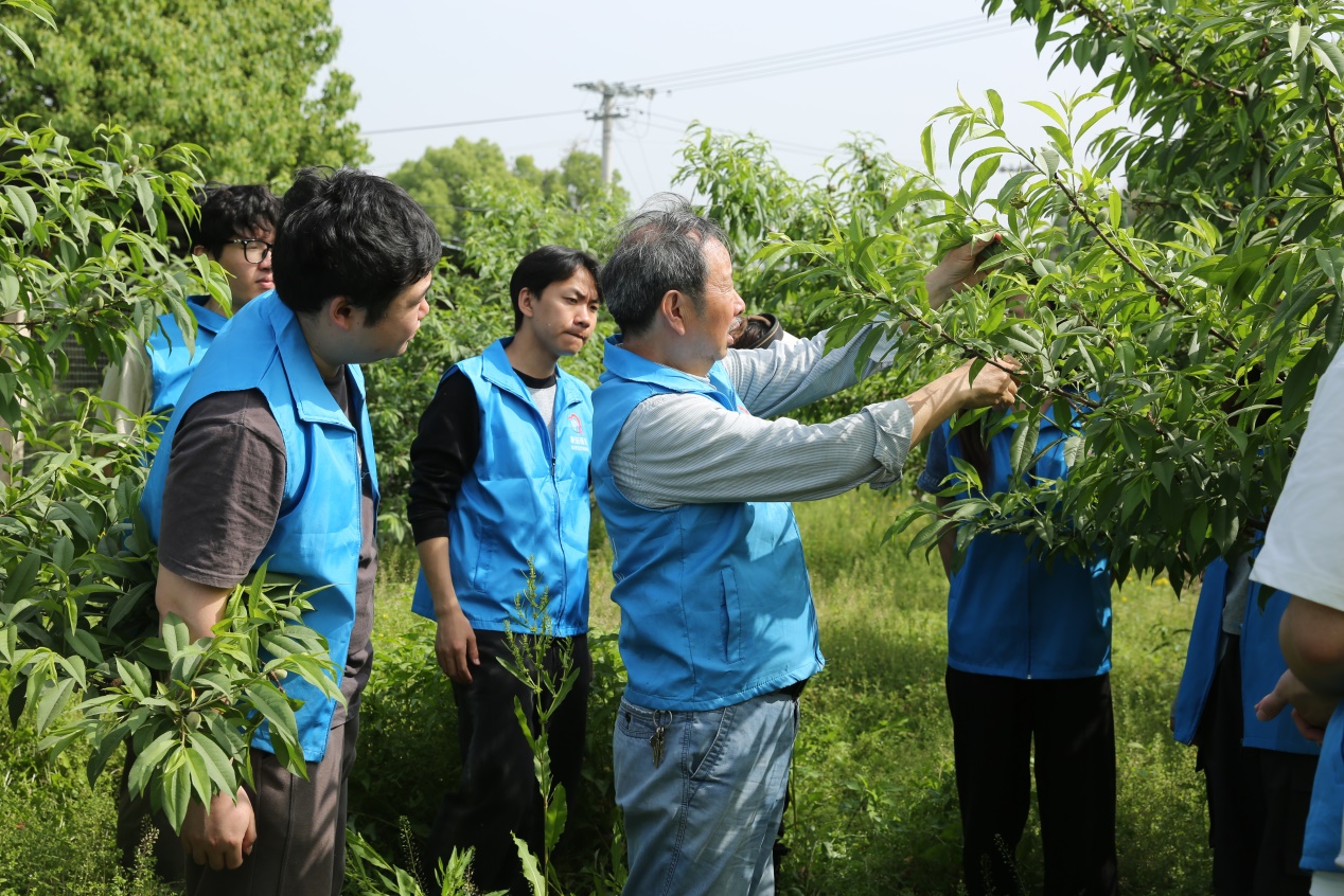 本次活动旨在带领园艺专业学生走出校园、走进果园,深入了解果树栽培技术,探索如何实现果树的丰产与优质,掌握种养结合的方法及果园生态循环模式的应用,了解农旅结合对提升果树种植经济效益的作用,从而开拓视野、促进专业成长。首先,果园主人为学生们介绍了果园的基本情况。随后,李晓林从专业角度详细讲解了果园的种养结合与生态循环模式,并详细指导了桃树疏果的方法与技巧,同时强调了疏果工作的重要性和操作时需要注意的事项。讲解结束后,同学们分组行动,开始对果园中的桃树进行实际的疏果操作,亲身体验所学知识的应用。