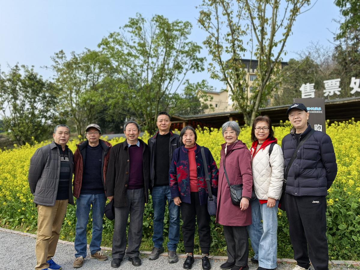 上午10时,学院教职工抵达重庆市巴南区二圣镇天坪山的海拔高度约600 米,山顶平坦开阔,四周群山环绕,自然植被丰富,现已建成的核心景区约1100亩,包括十里花果休闲长廊、清华白鹭潭湿地公园、滨湖花海、星空露营、水上运动、格桑花海、紫薇园、海棠园、杜鹃园、杨梅园等景点,孕育出了花海、湖景、民宿、露营、亲子、采摘、研学、团建、赛事等特色农文旅体验项目,是重庆主城近郊的高山花海农文旅主题景区。层叠错落的油菜花海间嵌着青石板铺就的观景步道,学院教职工们穿过生态廊桥步入梯田景观带层次分明的梯田花海与白墙黛瓦的川东民居相映成趣作为国家级现代生态农业创新示范基地,该地以“科技赋能农业、美学重塑乡村”的实践成果,生动呈现了一幅乡村振兴的鲜活画卷。