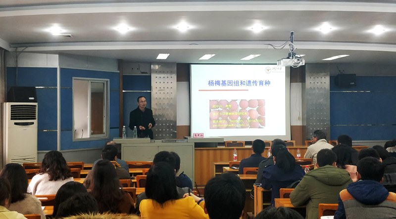 14日下午,高中山教授作题为《杨梅基因组和育种》学术报告,会议由宋洪元研究员主持,周志钦、席万鹏、景丹龙、魏大勇等10余名老师出席。报告会上,高教授由果树基因组学的研究进展引出,探讨了杨梅基因组的评估、标记、开发和应用。报告结束之后,高教授与各位老师进行了探讨交流。