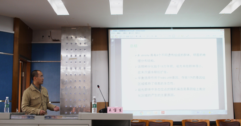 15日下午,王宝生研究员以《拟南芥近缘种的群体基因组学研究》为题作报告,会议由郭启高研究员主持。会上,王老师从研究背景出发,介绍了遗传变异分布格局、群体分化历史、基因组变异模式和形成机制等研究内容,并对拟南芥近缘种的群体基因组学的研究结果做了分享和总结。