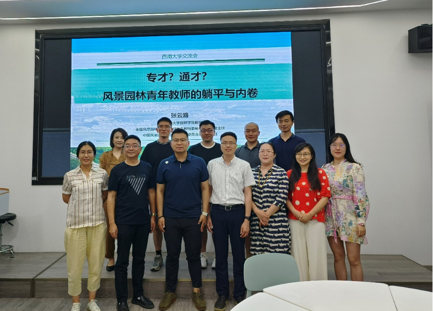 6月25日晚上,我院特邀北京林业大学园林学院张云路教授于33教508数字景观实验室开展了以《专才?通才?风景园林青年教师的躺平与内卷》为主题的学术讲座。本次讲座由我院风景园林系主任杜文武副教授主持,风景园林系副主任刘磊、刘家琳,十余位青年教师代表及部分研究生参加讲座活动。
